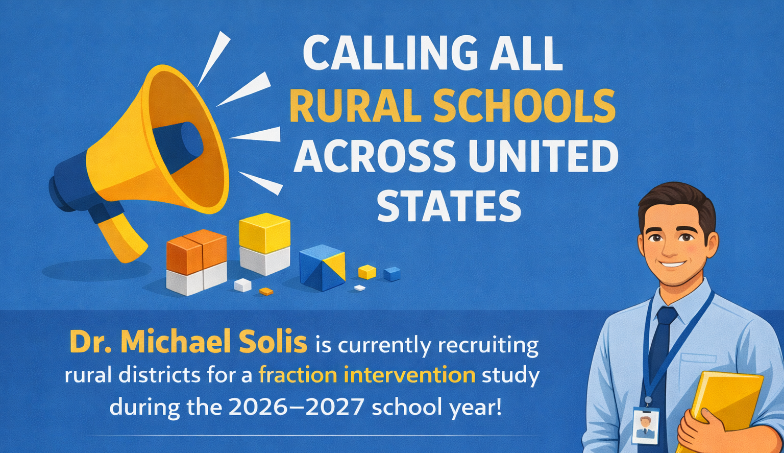 Dr. Michael Solis who is a faculty member at the University of California, Riverside is currently recruiting rural and semi-rural districts to participate during the 2026–2027 school year. Fraction Face-Off (FFO) study is an evidence-based mathematics intervention developed by Dr. Lynn Fuchs (Vanderbilt University) and approved by the What Works Clearinghouse. Fraction Face-Off provides small-group math intervention for students in grades 4 and 5 who experience math difficulty. Lessons are implemented during the regular school day and focus on building conceptual understanding and fluency with fractions through: